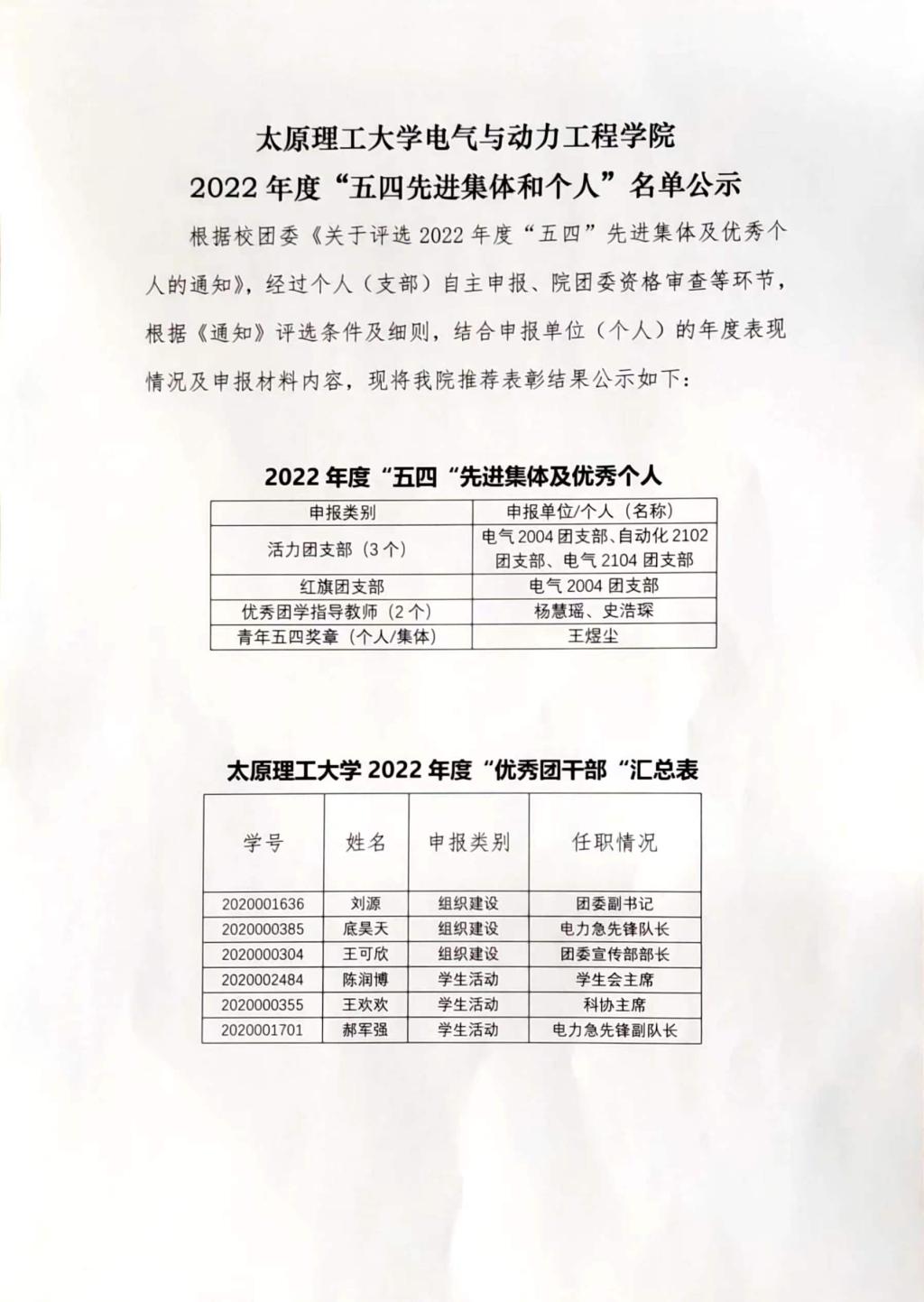 海洋之神8590vip2022年度“五四先进集体和个人”名单公示